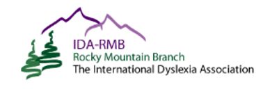 The International Dyslexia Association is a non-profit organization dedicated to helping individuals living with dyslexia, language, and literacy challenges, their families and the communities that support them. The Rocky Mountain Branch provides local conferences, workshops and resources to educate and increase public awareness of dyslexia, a learning difference that affects around 15-20% of the U.S. population. Through two annual educational conferences, numerous trainings and simulations, a yearly Assistive Technology Grant for schools, teacher scholarships, a library program, an online vetted Service Provider Referral list, and more, we hope to make a difference in Colorado, Utah, and Wyoming!